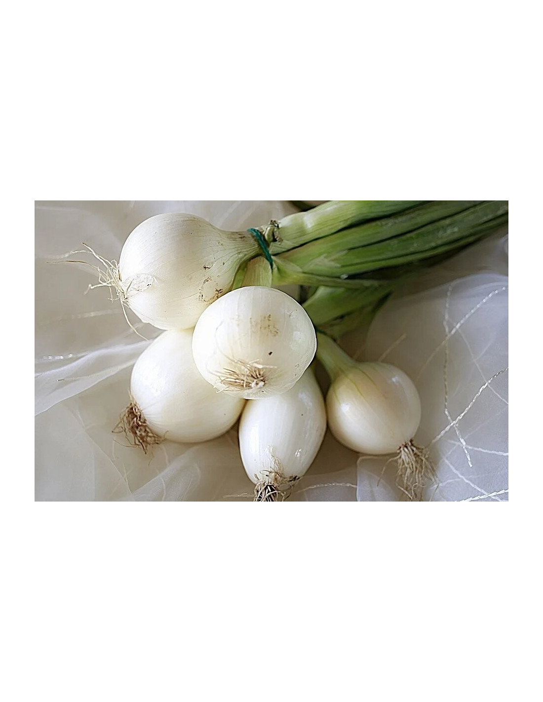 L’oignon blanc se consomme pour son bulbe. Il est idéal pour aromatiser vos plats. Vous pouvez le déguster cru en salade ou bien en accompagnement de vos légumes à la poêle ou dans un wok, en soupe ou en compotée. Ce légume bulbe est riche en composés soufré, ce qui provoque souvent des larmes lorsqu’on le coupe. Ce légume est riche en minéraux et en vitamines A, B, C. L’oignon est bon pour notre santé, il réduit la teneur en cholestérol et baisse la tension artérielle.