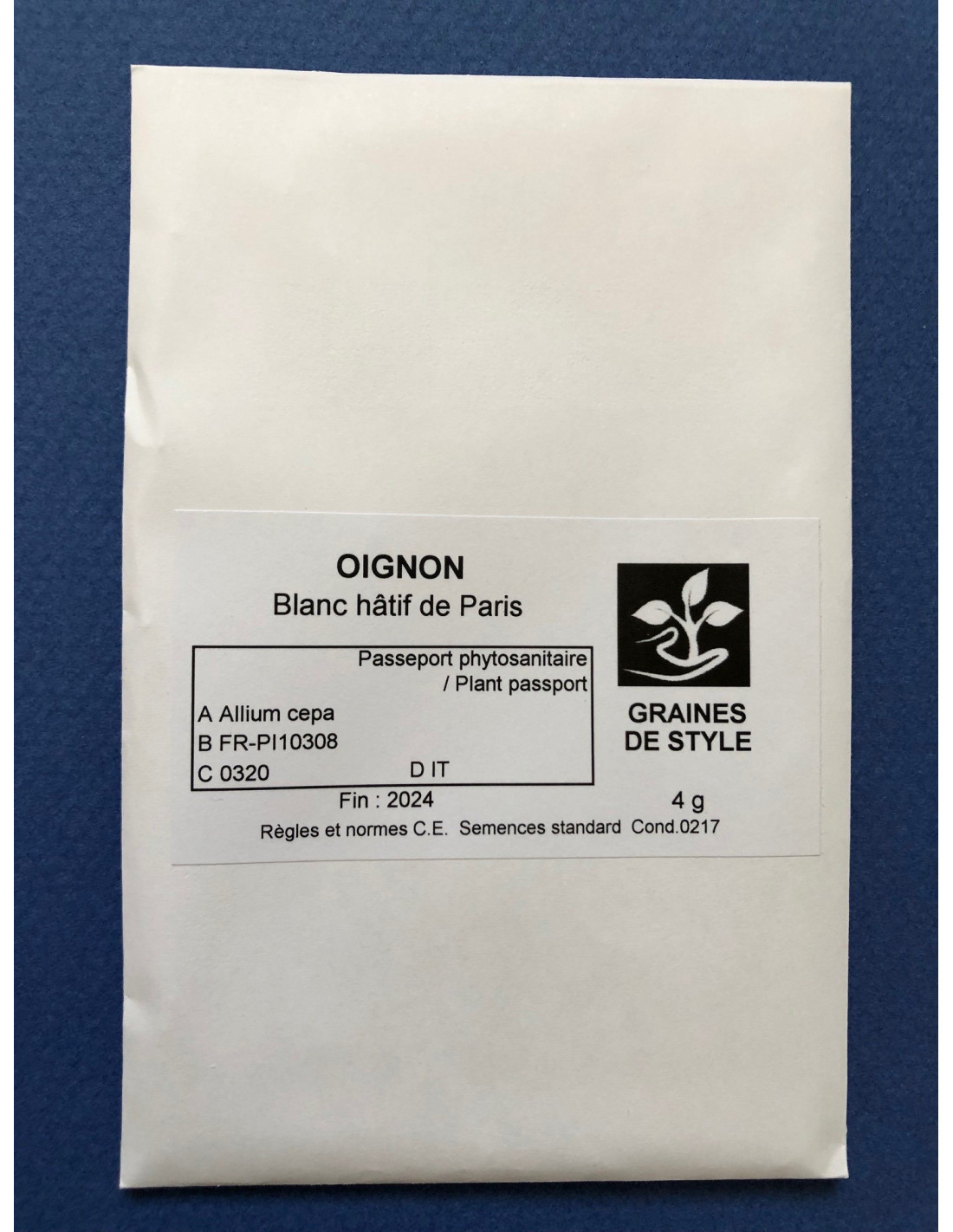 L’oignon blanc hâtif de Paris est une variété précoce qui produit des gros bulbes ronds, légèrement aplati. Cette variété de graines d'oignons offre de beaux bulbes de couleur blanc argentés qui se consomment frais dès la récolte. L’oignon blanc hâtif de Paris est apprécié des jardiniers car il résiste au froid et il est productif. Cette variété se sème au printemps et en automne pour une récolte échelonnée d’avril à août. Pour se développer, il aura besoin d’être placé dans un endroit ensoleillé avec un sol de préférence riche, léger et bien drainé pour exprimer tout son potentiel. La densité de plantation est d’environ 20 cm entre les rangs et 10 cm entre chaque plant. A maturité, il aura une hauteur de 40 cm et un diamètre d’environ 15 cm.