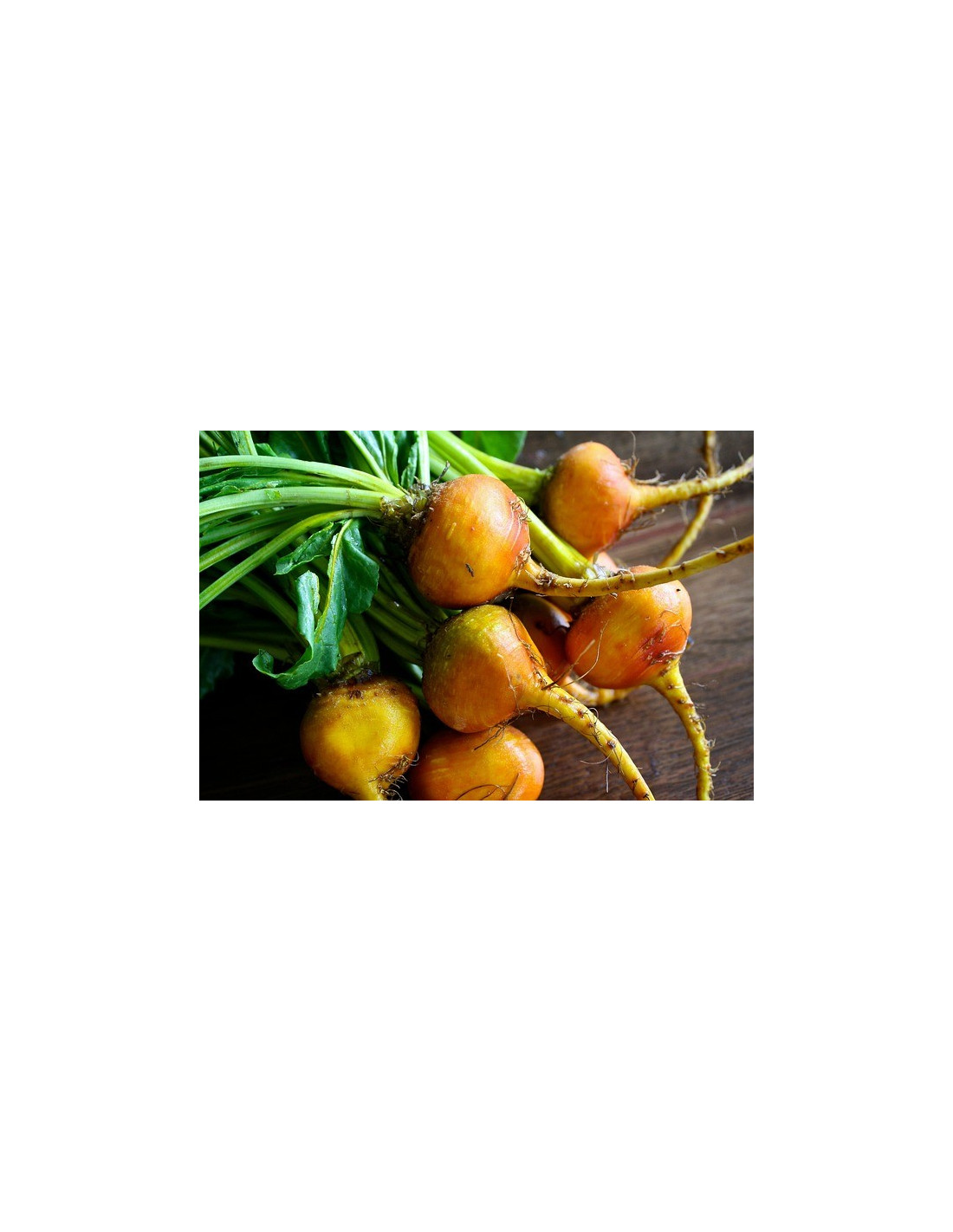 La betterave Burpee's Golden est une variété de betterave distinctive et attrayante grâce à sa couleur dorée et son goût doux. Ces graines de betteraves donnent une racine globulaire, de taille moyenne, entièrement de couleur dorée. Contrairement aux betteraves traditionnelles qui sont rouges ou violettes, cette variété offre une teinte dorée vibrante et uniforme. Lorsque vous coupez la betterave Burpee's Golden, vous découvrirez une chair également d'un jaune doré intense. La couleur dorée reste uniforme et attrayante, ajoutant une touche de couleur et de variété à vos plats. La betterave Burpee's Golden a une texture tendre et juteuse, et sa saveur est douce et sucrée. Cette variété est moins terreuse que les betteraves rouges traditionnelles, ce qui peut en faire un choix intéressant pour ceux qui préfèrent une saveur plus douce et délicate. Elle est souvent très appréciée des enfants. Les feuilles de la betterave Burpee's Golden sont également comestibles et peuvent être utilisées dans les préparations culinaires. Les feuilles sont vert foncé avec des veines rouges ou violettes, ce qui crée un contraste visuel intéressant avec la racine dorée. La betterave se consomme crue ou cuite. Lorsqu'elle est crue, elle peut être râpée ou tranchée finement pour ajouter de la couleur et de la saveur à des salades ou des wraps. Lorsqu'elle est cuite, elle conserve sa belle couleur dorée et peut être utilisée dans des plats tels que des rôtis, des purées, des soupes ou des accompagnements.