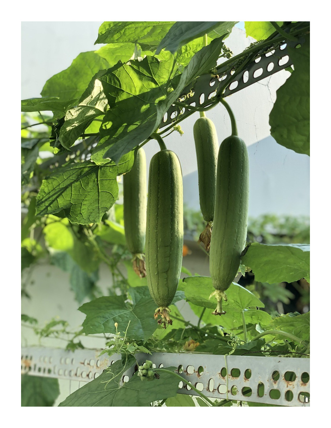 Pour que le plant s’installe, maintenir un sol frais et humide pour répondre à ses besoins. Limitez vos arrosages en paillant aux pieds des plants. Cette technique limitera l’évaporation de l’eau et gardera un sol frais. Cette variété reste assez gourmande en lumière et chaleur. Originaire du sud-est de l’Asie et de l’Afrique, cette courge éponge aime le climat tropical pour se développer et produire de nombreux fruits. Lorsque les conditions de cultures sont réunies, elle produira de grosses fleurs jaune orangé qui se transformeront en fruit ressemblant à des courgettes vertes généralement de 25 à 55 cm de long.