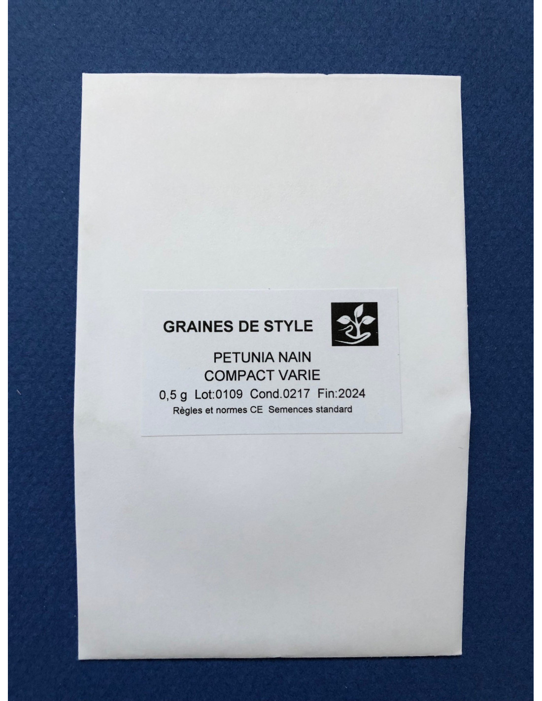 Le pétunia nain compact variée est une plante annuelle très florifère de juin aux gelées. Cette variété à croissance rapide, produit de belles fleurs avec un nombre impressionnant de coloris. Son feuillage est vert foncé mais ne résiste pas aux températures négatives. Les fleurs sont simples en forme d’entonnoirs. Pour se développer, le pétunia nain compact varié aura besoin d’être placé dans un endroit ensoleillé à mi ombre. Il s'adapte à tout type de sol avec une densité de 30 cm en tous sens. A maturité, ces graines de fleurs semis de printemps formeront une touffe ronde d’une hauteur de 30 cm pour 20 cm de diamètre.
