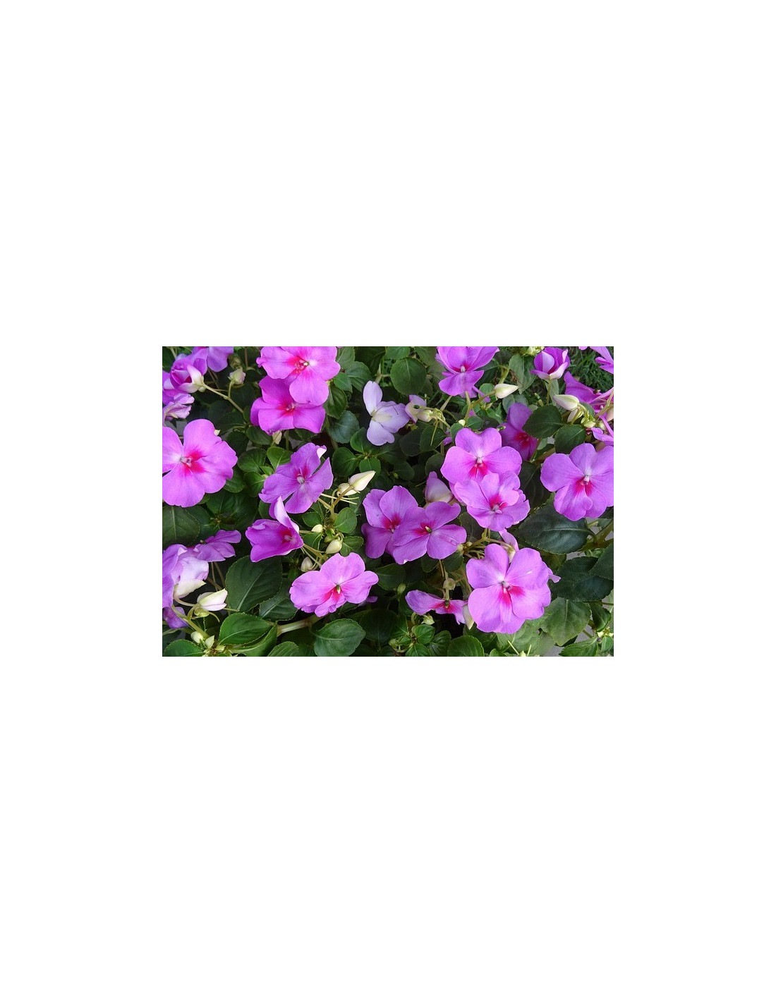 Cette variété d'impatiens est appréciée pour sa facilité d'entretien. Elle préfère les endroits ombragés ou partiellement ombragés et nécessite un sol bien.