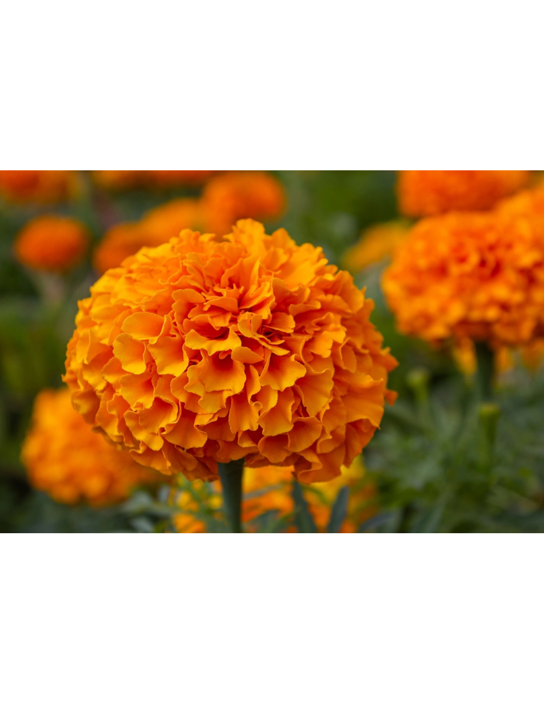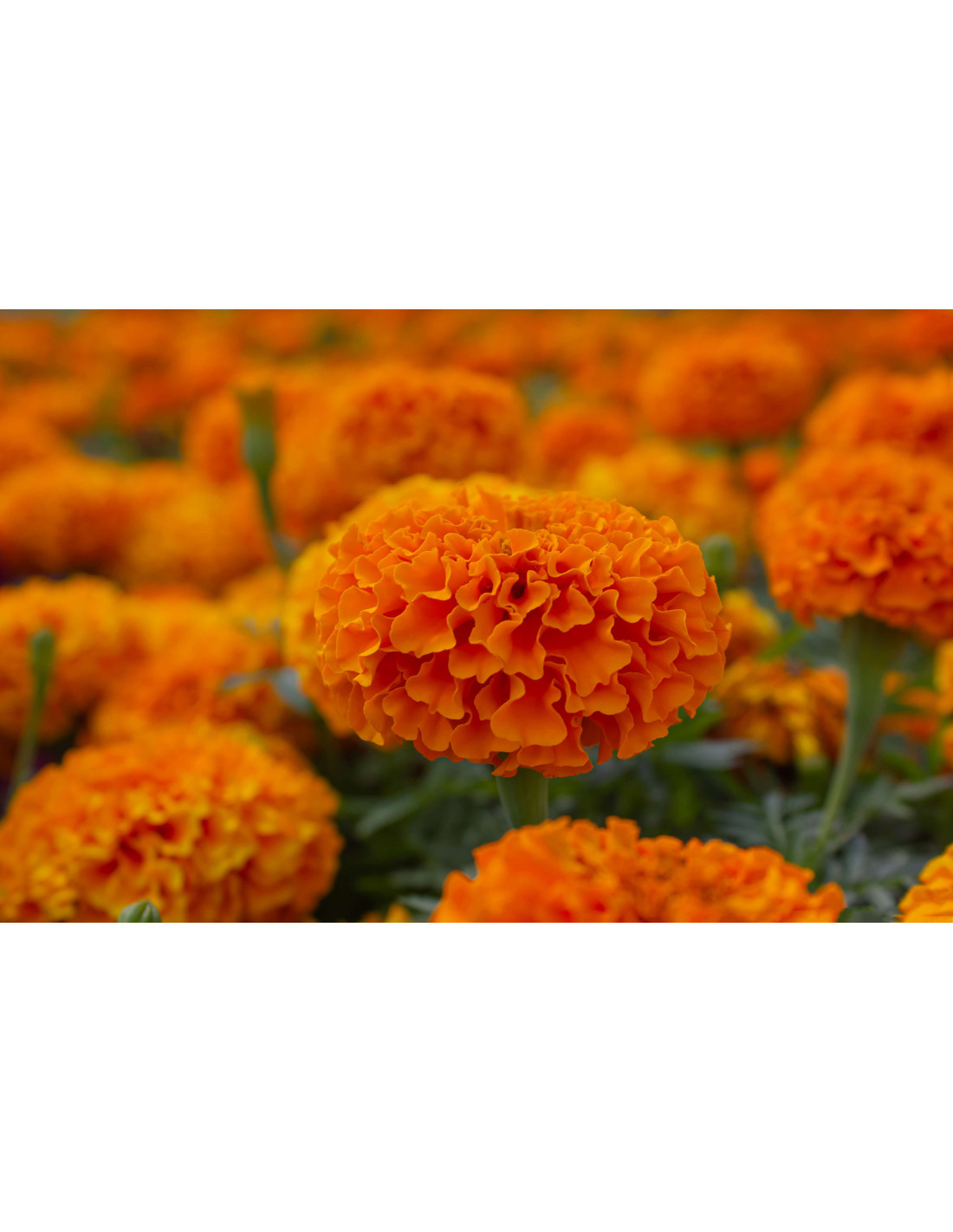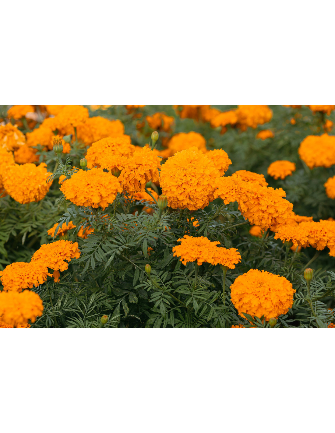 Les fleurs de la Rose d'Inde se déclinent en une variété de couleurs, allant du jaune vif au orange profond, en passant par des nuances de rouge et même des combinaisons bicolores. Elles sont composées de pétales denses et souvent de formes variées, certaines ressemblant à des pompons tandis que d'autres sont plus aplatis et étalés.