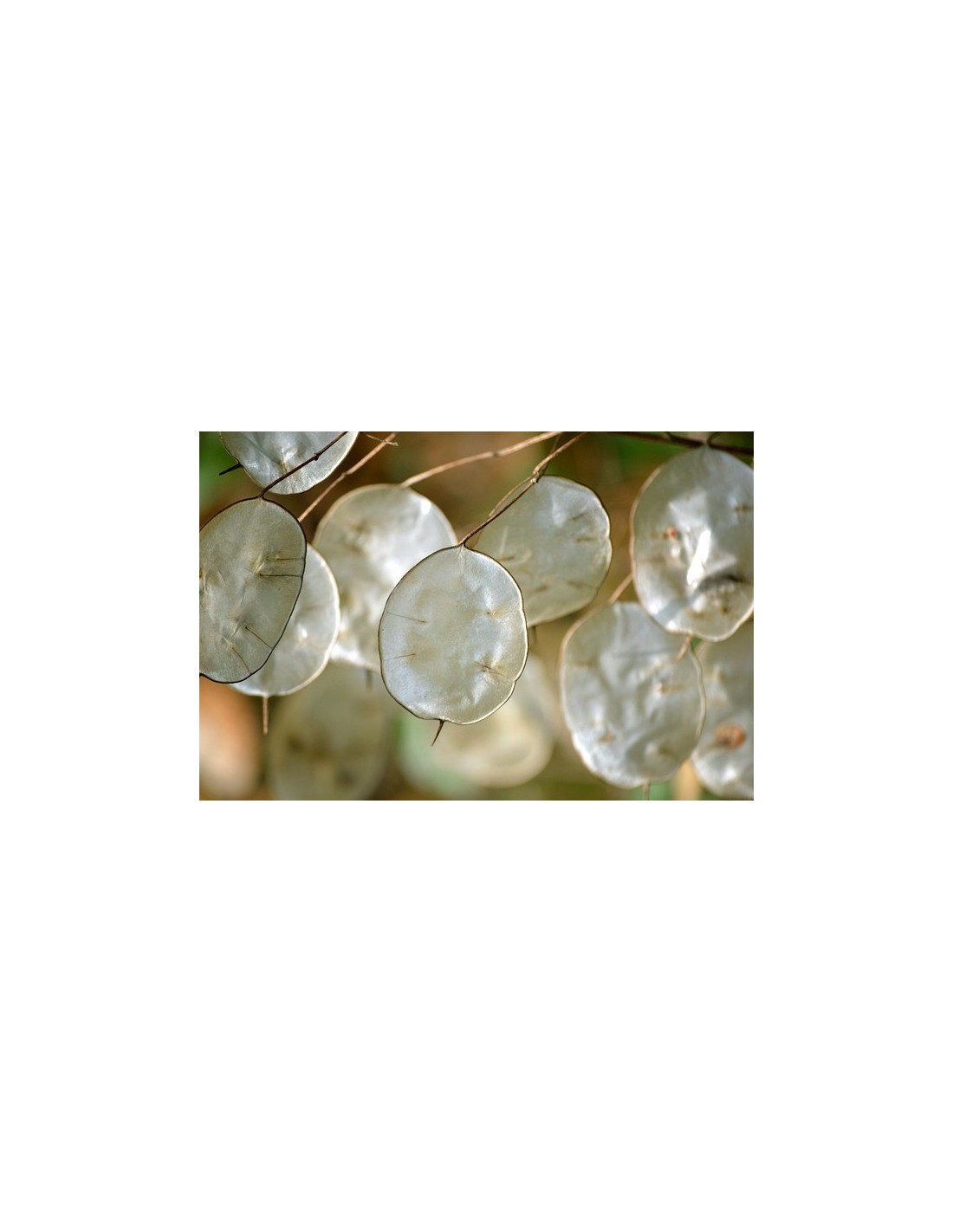 Aspect unique des fruits : Après la floraison, la plante produit des fruits plats et ronds, ressemblant à des pièces de monnaie – d'où son nom. Ces silicules sont initialement vertes, puis deviennent brunes ou argentées en mûrissant. Lorsqu'elles sont sèches, ces capsules translucides exposent les graines à l'intérieur, créant un effet visuel fascinant qui est particulièrement prisé pour les bouquets secs.
