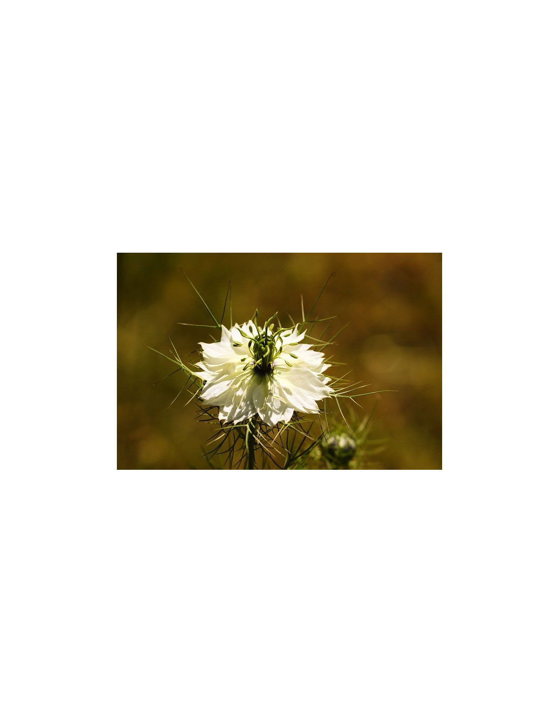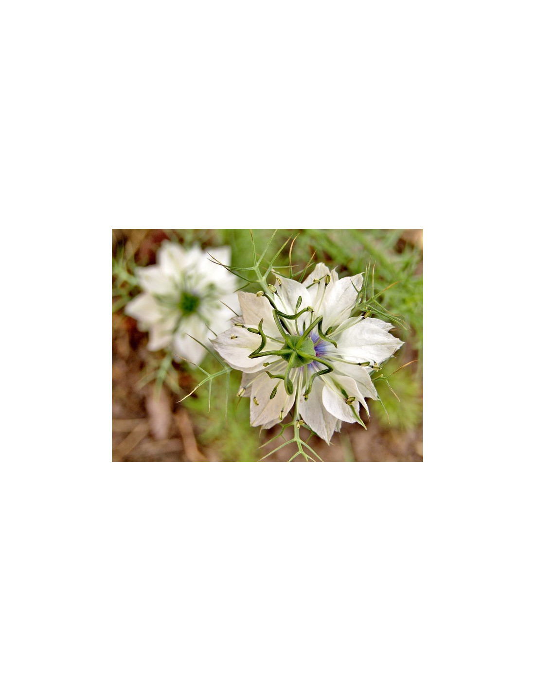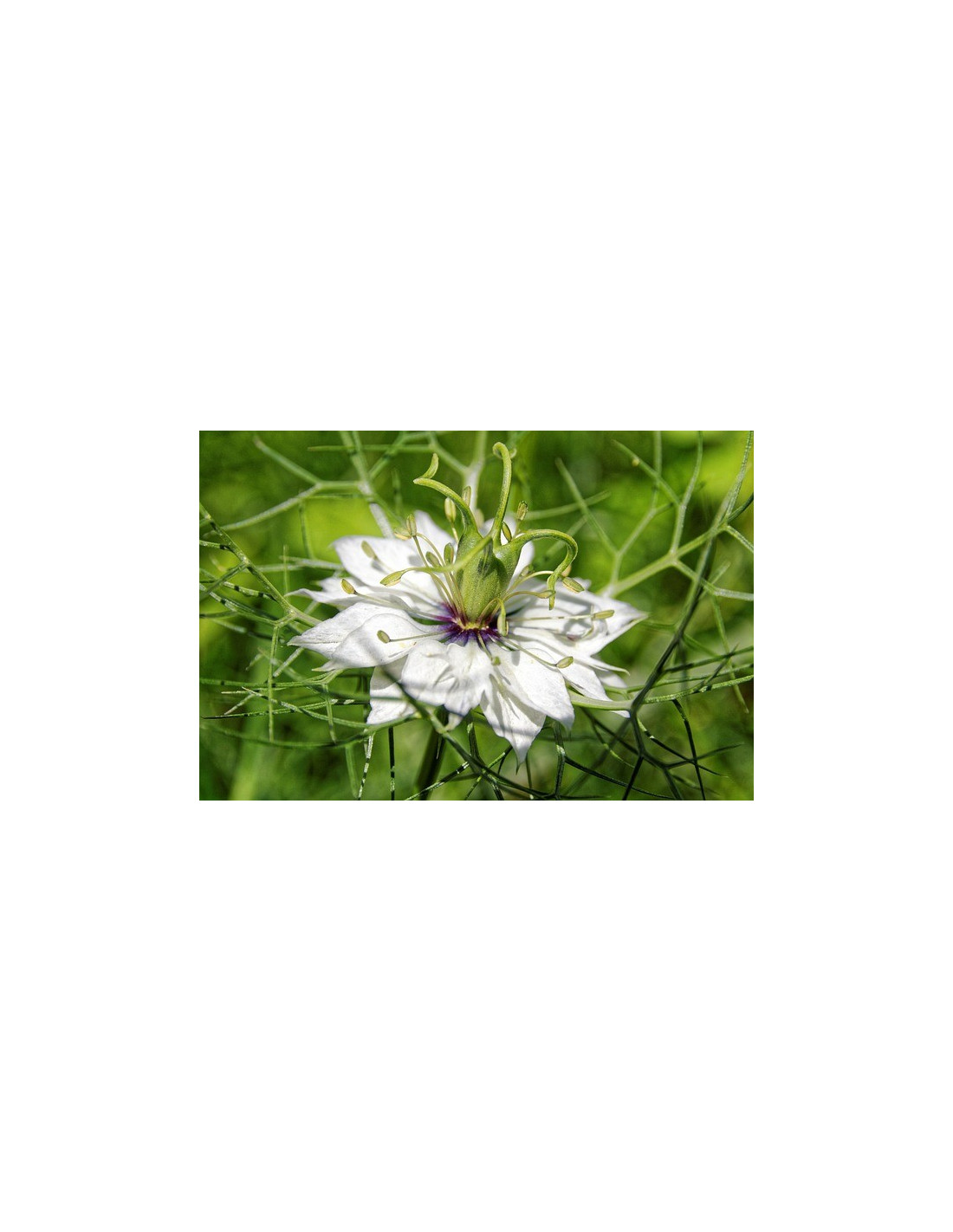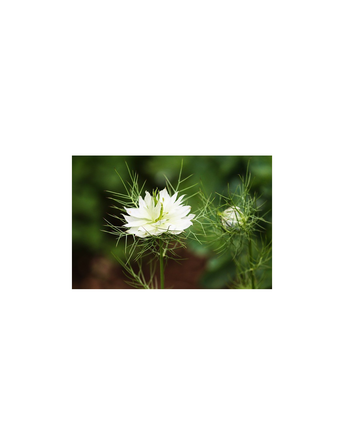 Apparence des fleurs : Les fleurs de la Nigelle de Damas blanche sont petites, en forme d'étoile, et d'un blanc pur. Elles ont un aspect délicat et élégant, ce qui les rend très appréciées dans les arrangements floraux.