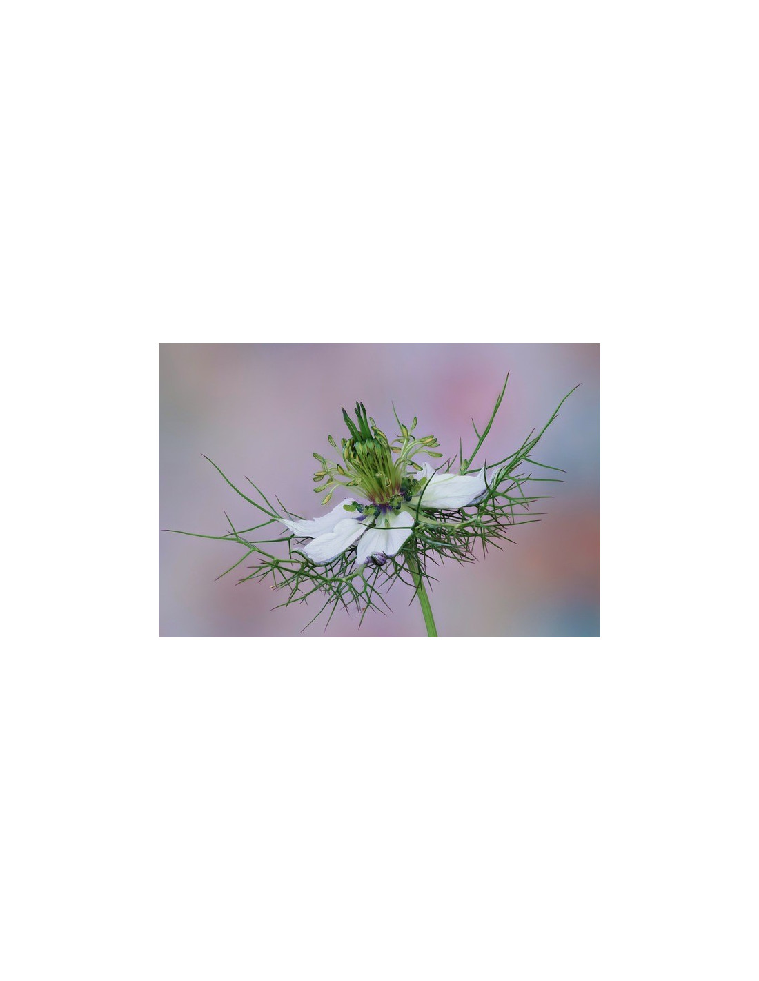 La Nigelle de Damas blanche est originaire d'Asie occidentale et est souvent cultivée comme plante ornementale dans les jardins. Elle préfère les sols bien drainés et ensoleillés, ce qui la rend adaptée à de nombreuses régions.