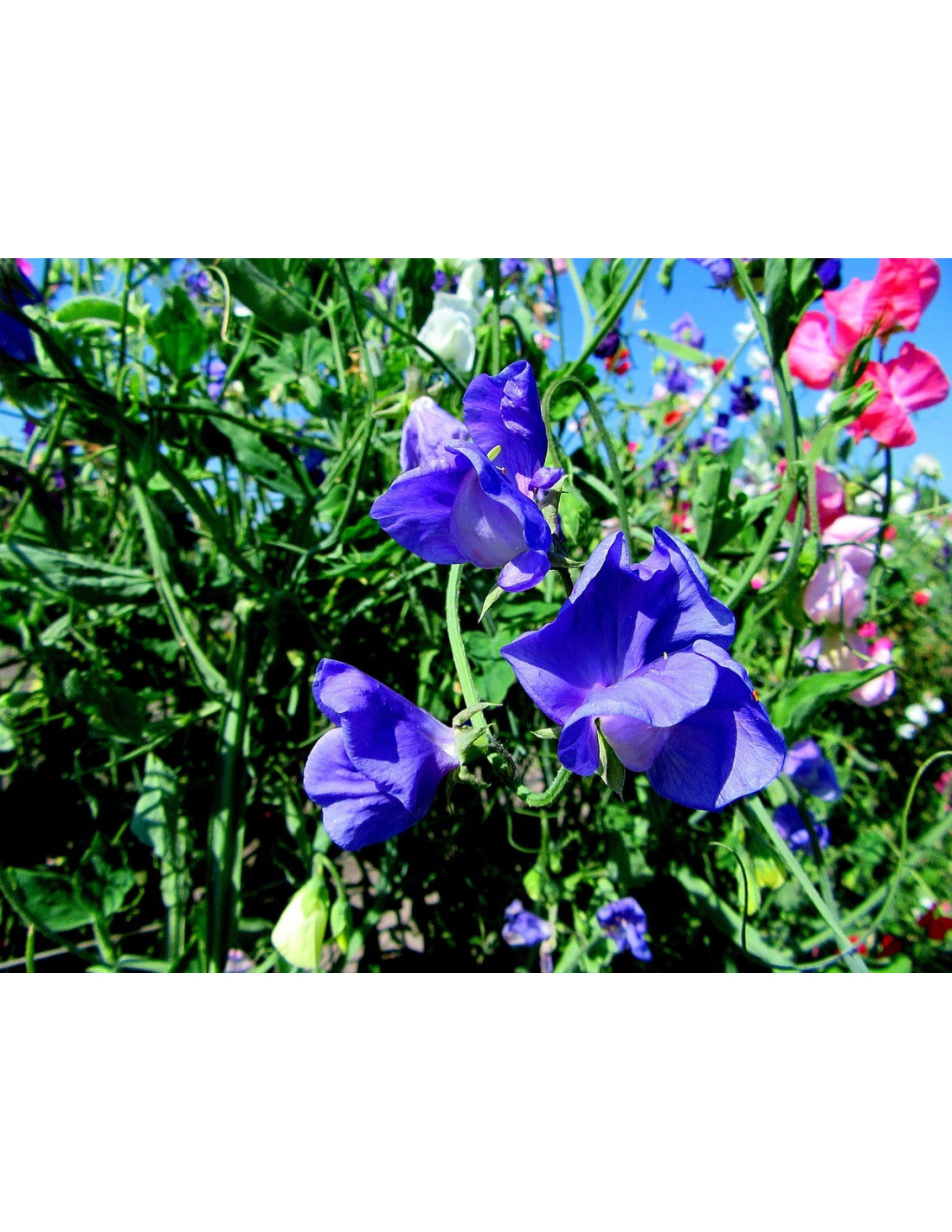 Décoration de jardin : Les Pois de senteur spencer bleu sont couramment utilisés à des fins décoratives dans les jardins, les massifs de fleurs, les bordures et les conteneurs. Leur élégante floraison bleu crée un contraste visuel saisissant et ajoute de la beauté à votre espace extérieur.