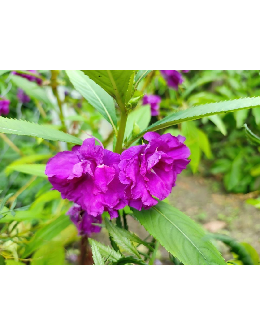 La Balsamine Double à Fleur de Camélia, avec ses fleurs volumineuses et ressemblant à celles du camélia, est une plante ornementale très prisée pour son apparence spectaculaire. Elle est idéale pour égayer les jardins d'ombre et les massifs floraux avec ses couleurs vives et variées.