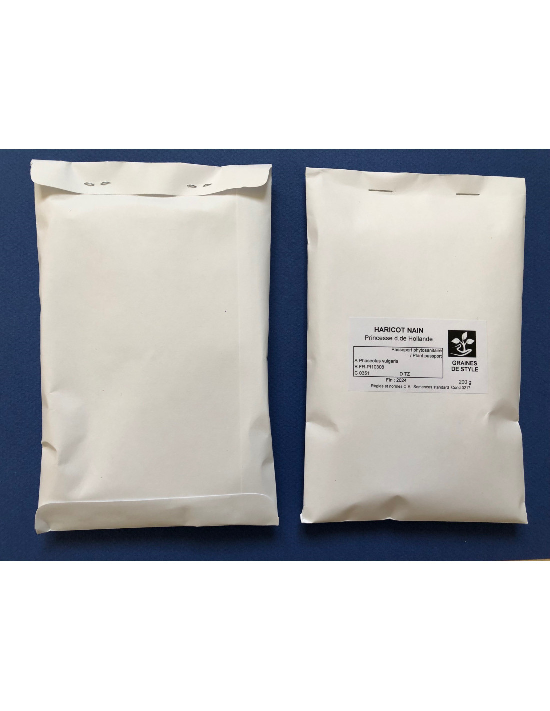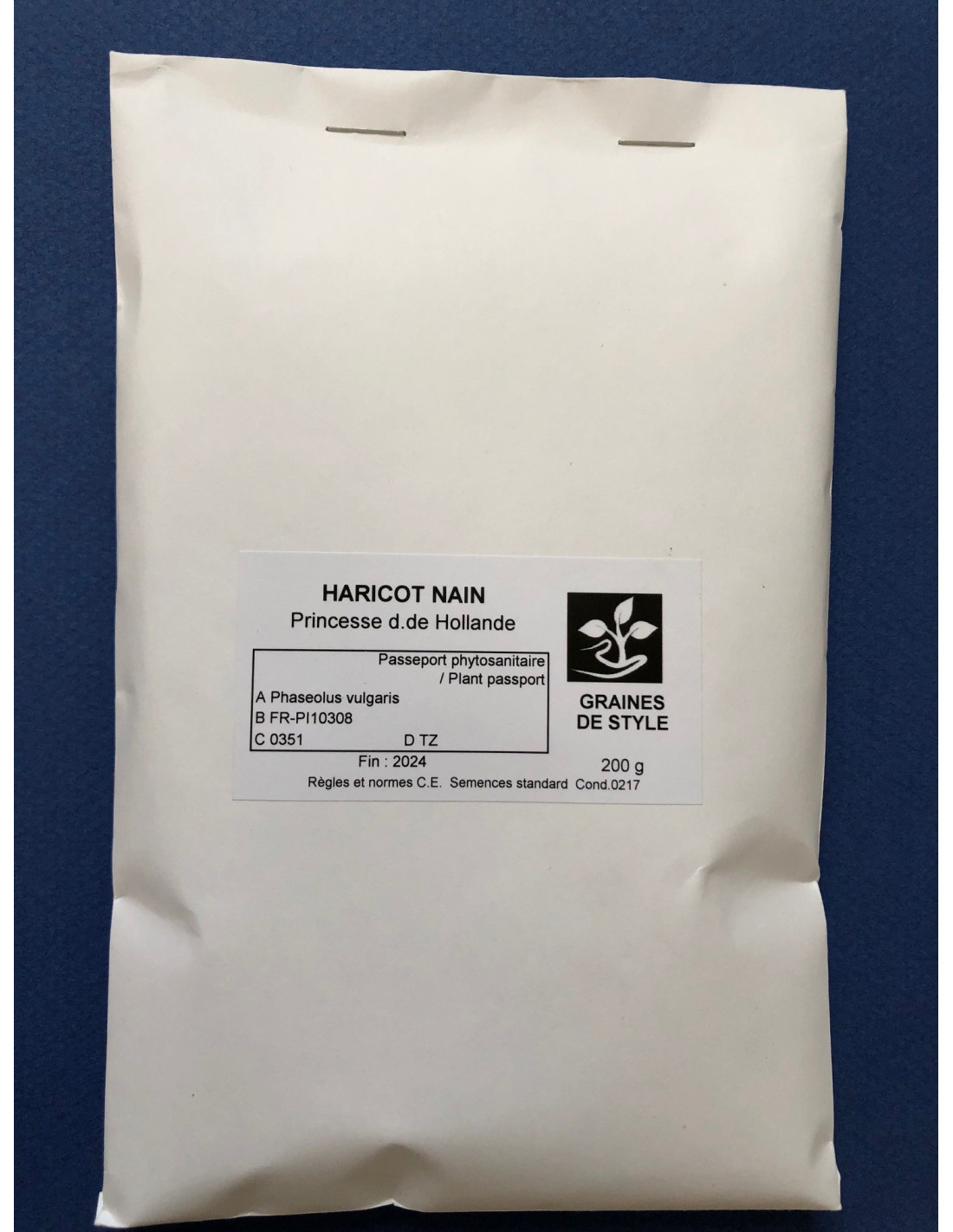 Le haricot nain mangetout Princesse de Hollande est une variété ancienne qui produit des longues gousses vert clair bien charnues. Cette variété de graines de haricots nains mangetout était l’une des premières à ne pas former de fil. Très apprécié pour sa saveur et sa texture tendre lors de la dégustation. Le semis s’étale d’avril à août pour une récolte de juin à octobre. Pour se développer dans de bonnes conditions, il faudra le placer dans un endroit ensoleillé avec un sol de préférence riche, léger et bien drainé. La densité de plantation est 6 cm entre chaque plant et 40 cm entre les rangs avec une hauteur de 45 cm.
