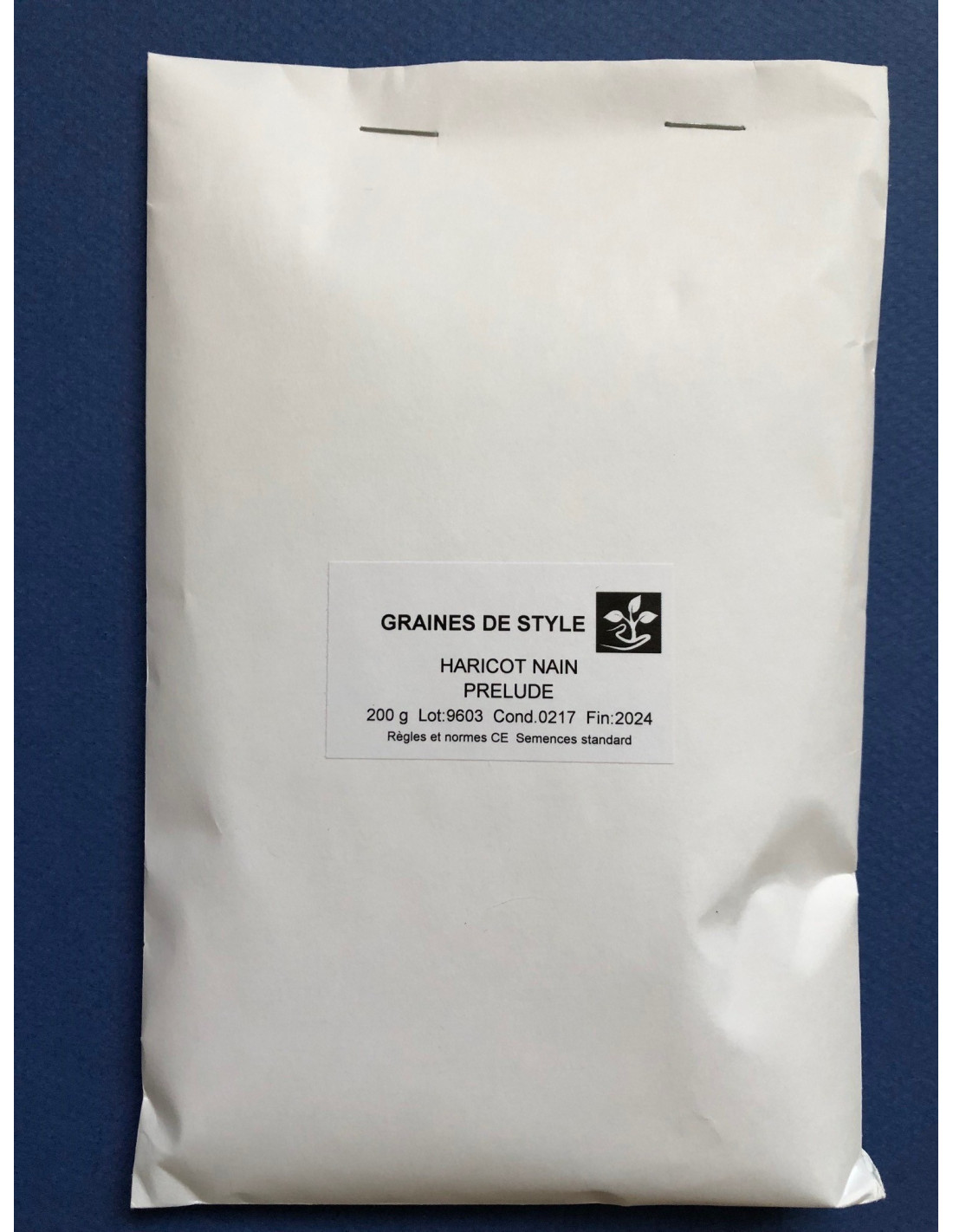Le haricot nain mangetout Prélude est une variété récente, reconnu pour son très bon rendement et sa précocité. Ce haricot est une amélioration de la variété « Princesse double de Hollande ». Il produit de belles gousses vert foncé, d’une longueur de 13 à 15 cm légèrement arquées et ovales. Les gousses sont assemblées en grappes et renferment des grains blancs à l’intérieur. Le semis de ces graines de haricots nains mangetout s’étale d’avril à août pour une récolte de juin à octobre. Pour se développer dans de bonnes conditions, il faudra le placer dans un endroit ensoleillé avec un sol de préférence riche, léger et bien drainé. La densité de plantation est 6 cm entre chaque plant et 40 cm entre les rangs avec une hauteur de 45 cm.