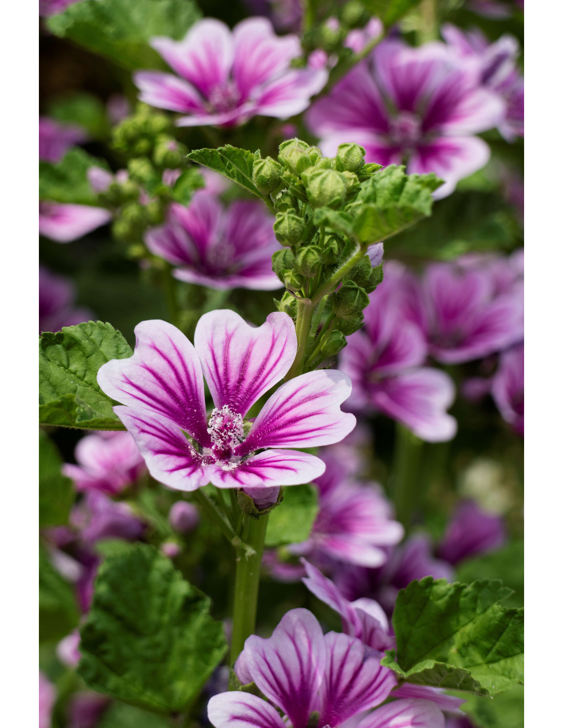 En résumé, la mauve de Mauritanie se distingue facilement par ses feuilles arrondies et dentées, ses grandes fleurs pourpres avec des veines distinctives et sa stature robuste. Ces caractéristiques en font une plante attrayante et utile pour les jardins et les usages médicinaux.