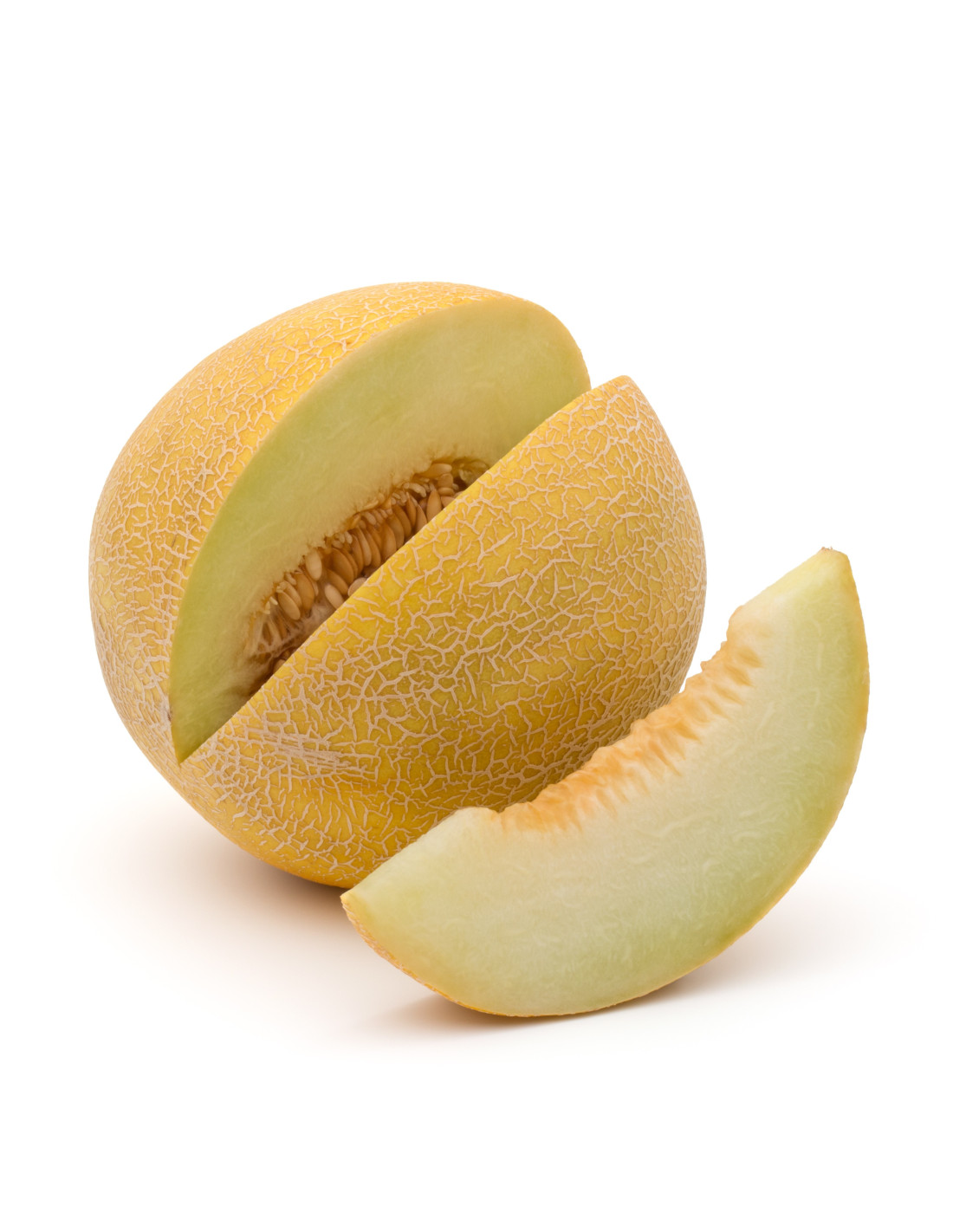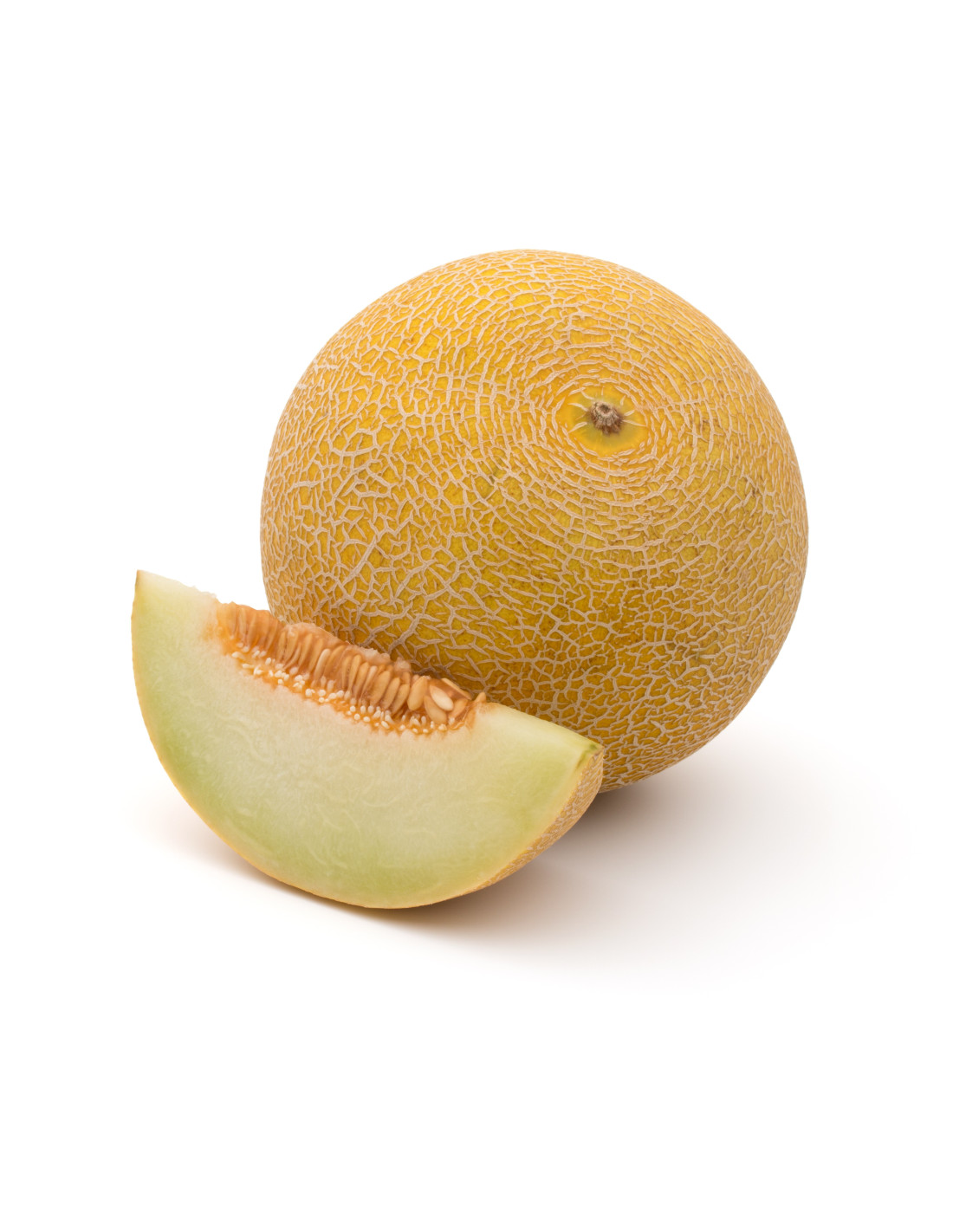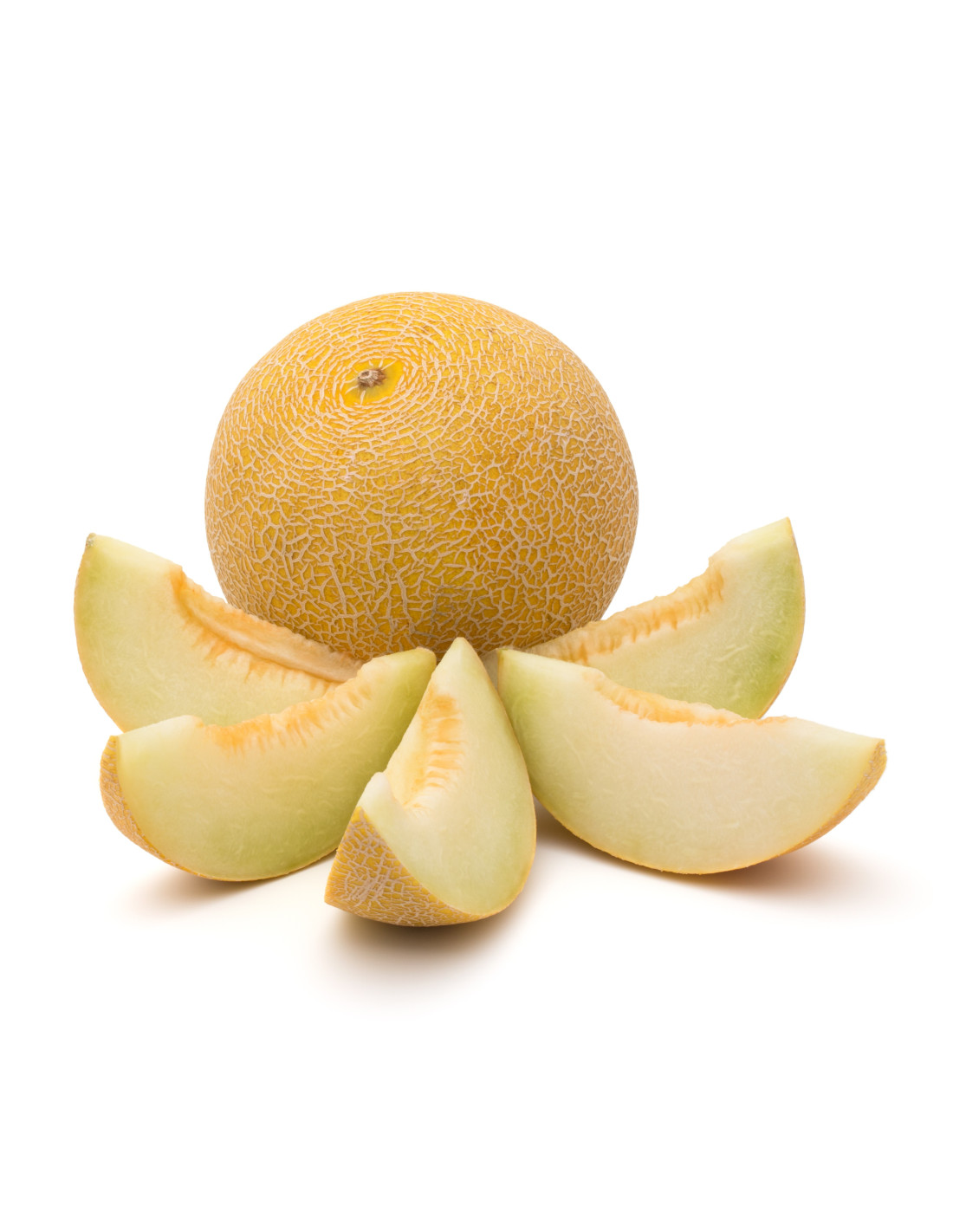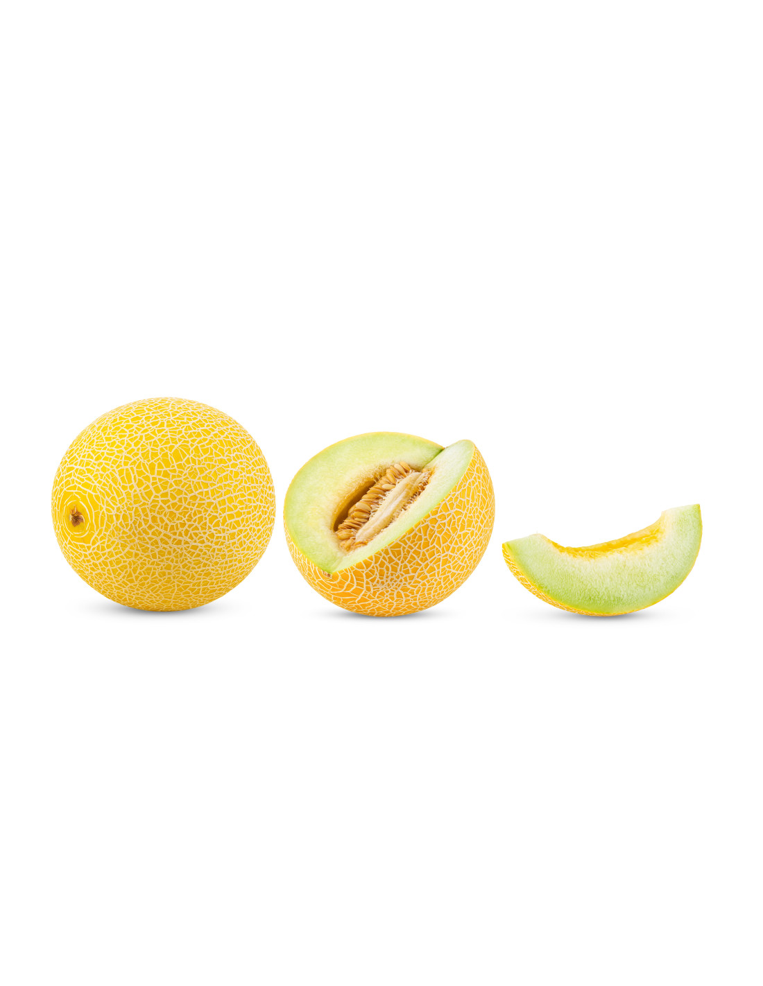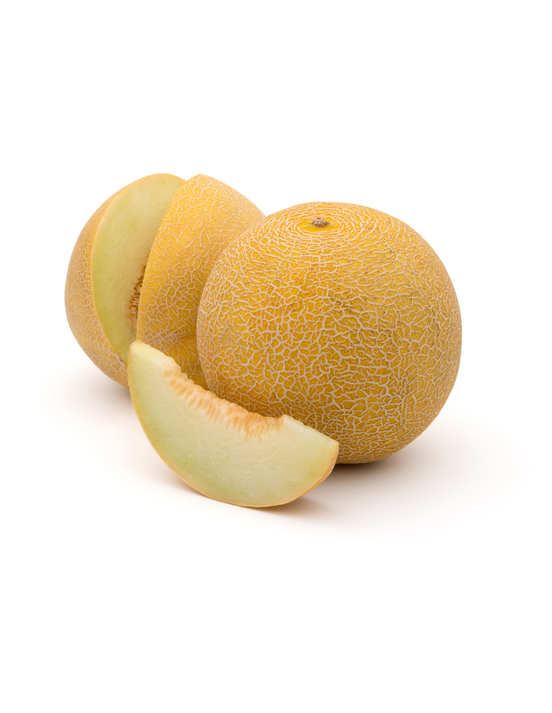 Couleur de la peau : Le melon Galia mûr a une peau qui varie du jaune au vert clair. Il ne possède pas les sillons profonds que l'on trouve sur certains autres melons, comme le Cantaloup.