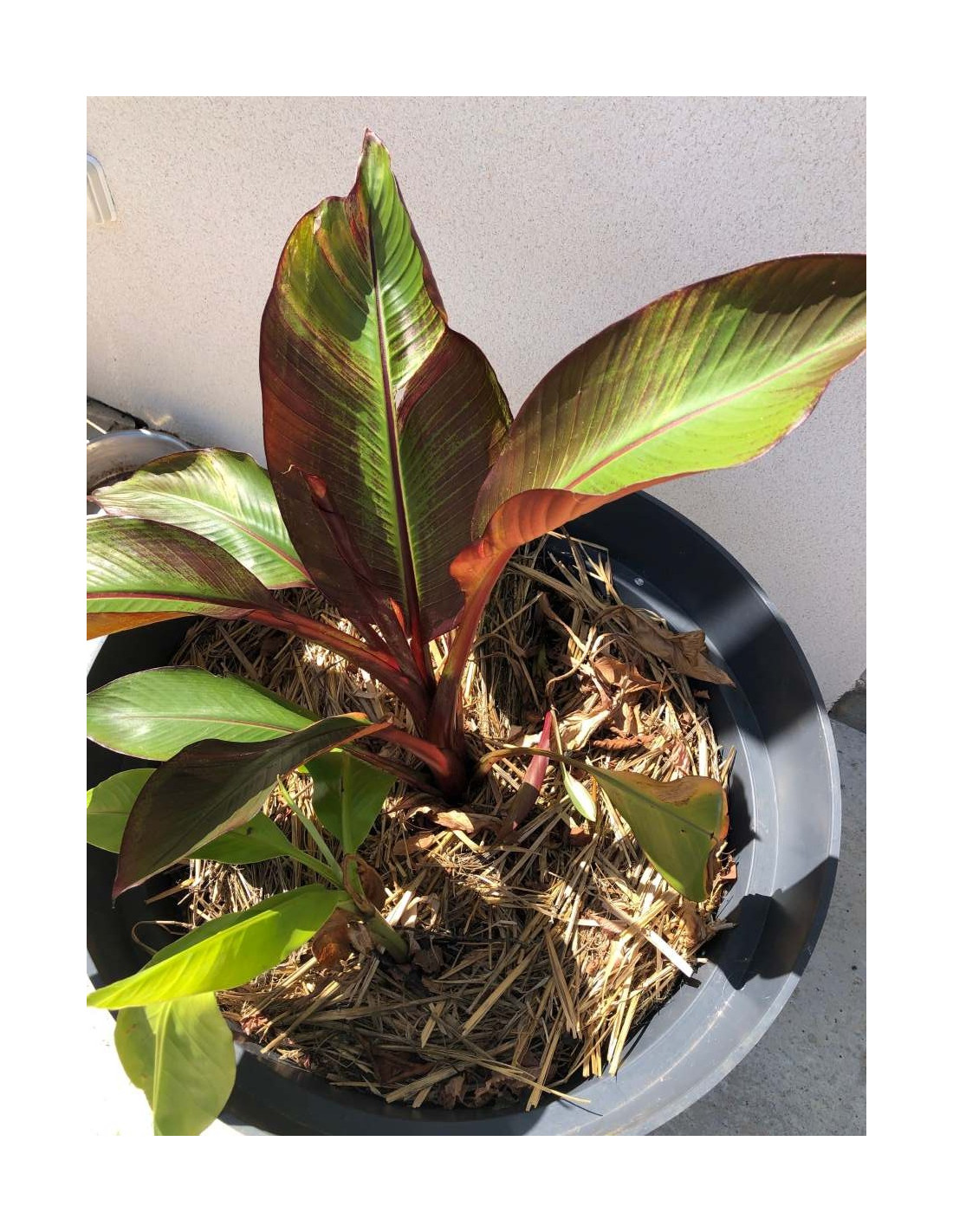 Arrosez régulièrement pour maintenir le sol uniformément humide mais pas détrempé. Fertilisez mensuellement avec un engrais équilibré riche en potasse pour promouvoir la santé des feuilles et la croissance générale. Croissance : Le Bananier d'Abyssinie croît rapidement sous les bonnes conditions, pouvant atteindre jusqu'à 6 mètres de hauteur. Il ne produit pas de rejets, donc chaque plante est généralement un seul gros tronc avec un bouquet de feuilles au sommet.