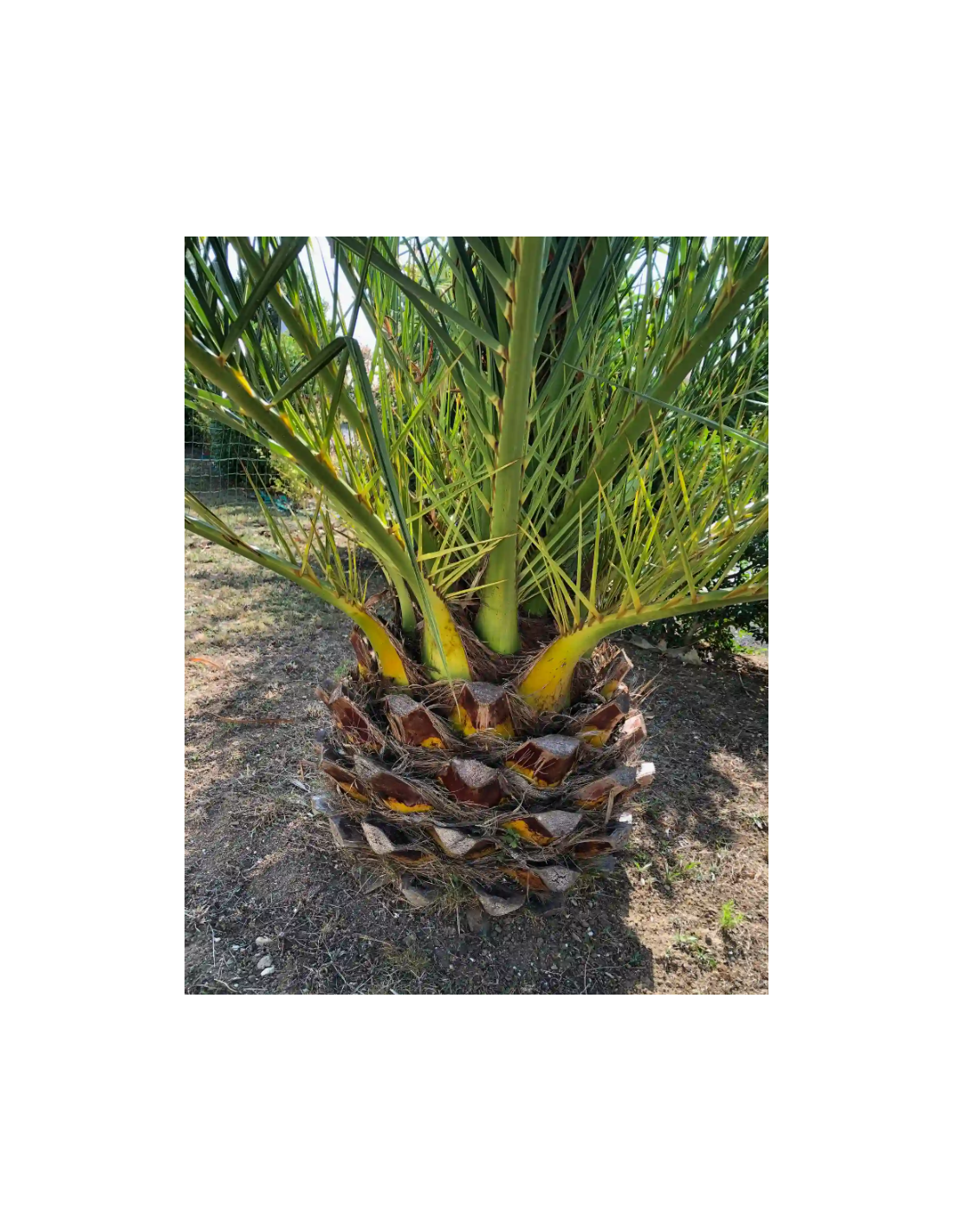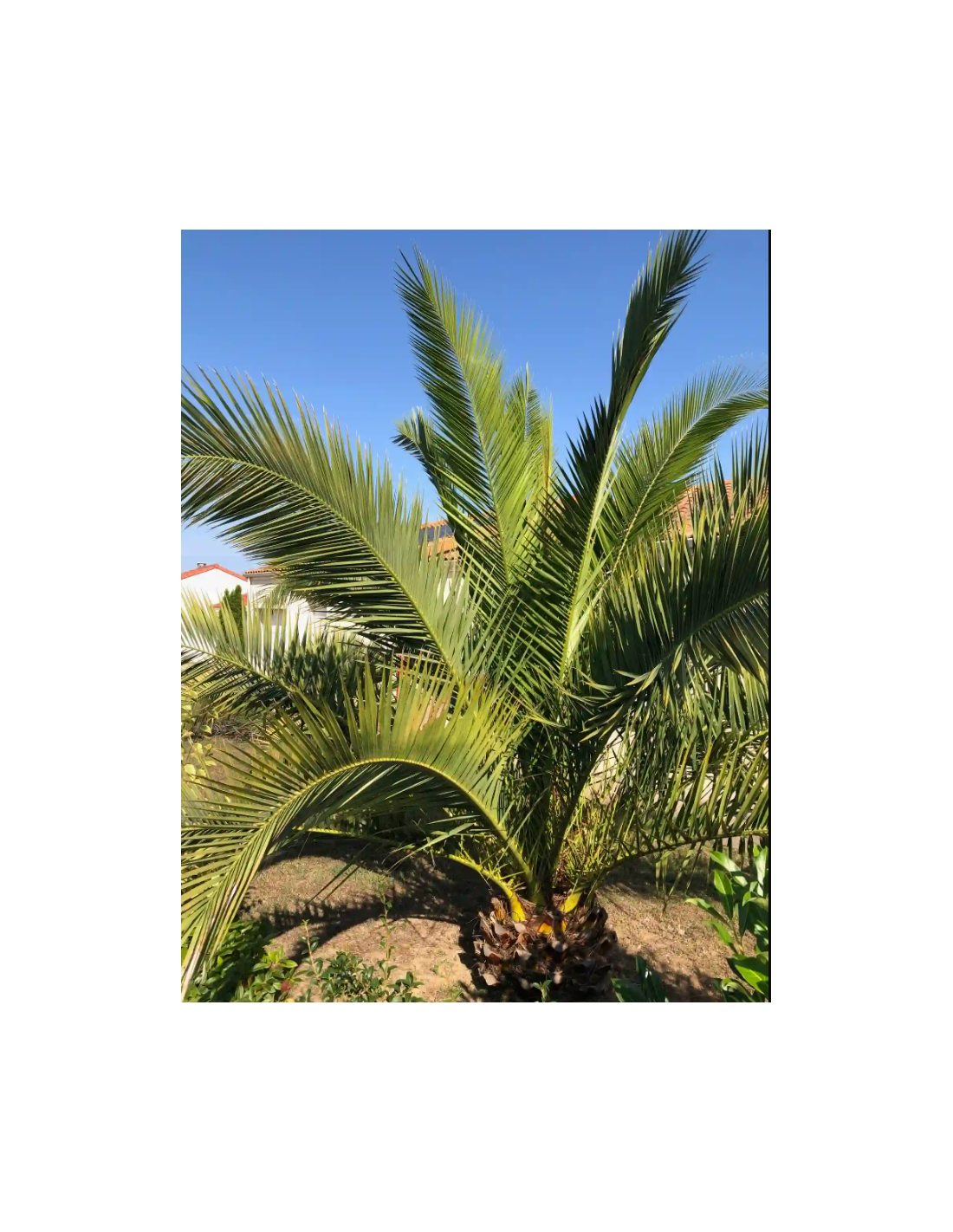 Arrosez régulièrement pour maintenir le sol légèrement humide, surtout pendant les périodes de chaleur intense. Fertilisez avec un engrais équilibré pour palmiers au début du printemps et en été pour encourager une croissance vigoureuse et saine. Croissance : Le Phoenix canariensis est un palmier à croissance relativement rapide qui peut atteindre jusqu'à 20 mètres de hauteur. Il a une silhouette imposante avec un large tronc et une grande couronne de feuilles. Floraison et fructification : Il produit des fleurs jaunes en grappes qui sont suivies de fruits oranges. Bien que les fruits soient généralement non comestibles, ils ajoutent une couleur décorative à l'arbre.